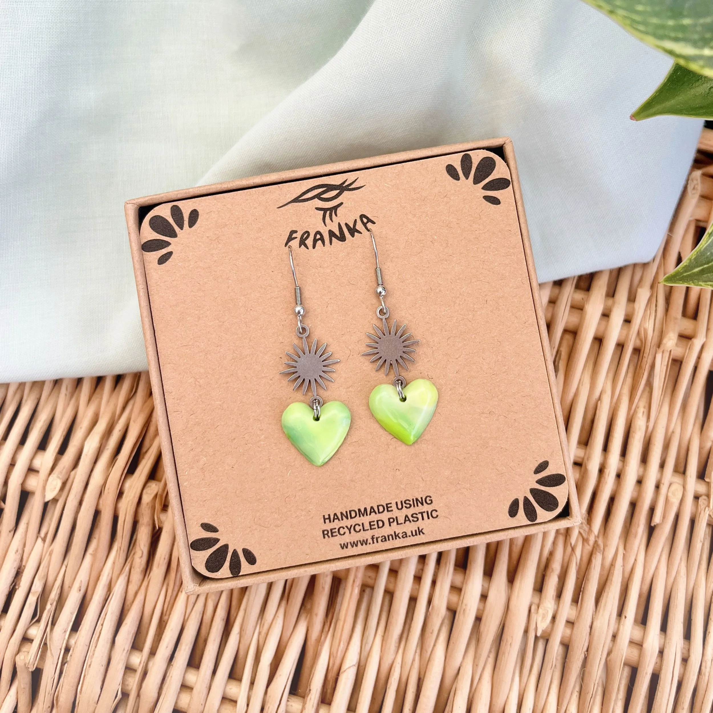 We use post-consumer plastic bottle tops to make these earrings. They’re melted down, pressed out and then carved by hand, that’s what makes every pair unique. Each pair of earrings you buy is saving single use plastic, in one form or another, from being discarded into the ocean and/or the environment.